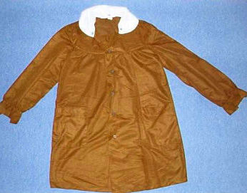dwoma kieszonkami na piersi. Dziewczęcy był dłuższy, ściągnięty w pasie paskiem