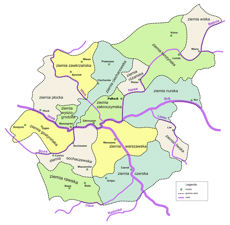 Mazowsze - Podział na dawne ziemie.